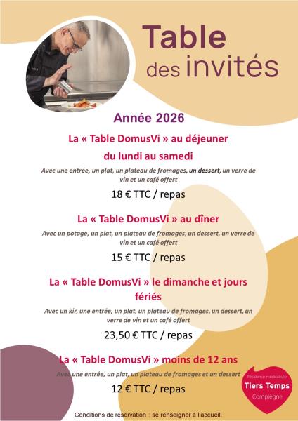 Les repas invités à la résidence